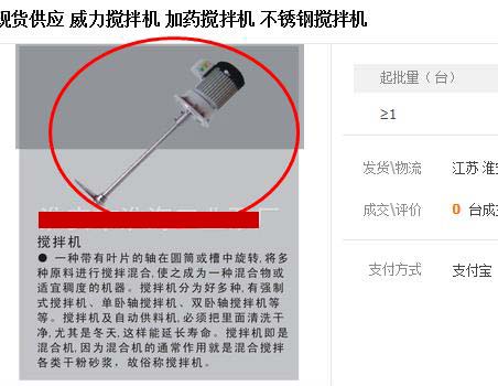 公司的攪拌機圖片又被同行盜用了,今天在阿里巴巴1688首頁隨意用了幾個關鍵詞“不銹鋼攪拌機”、“化工攪拌機”、“液體攪拌機”、“加藥攪拌機”居然搜出了不少盜用的圖片,看到這種情況不介意是假的,畢竟是自己的知識產權,況且“瘌痢頭的兒子是自己的好”,從產品的研發、設計、生產、拍攝到PS修整,沒一項都是自己心血的結晶,就這樣不打招呼的被人“借走”怎么想也不是滋味,但遇到這種情況更多的是無奈。